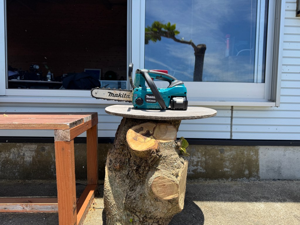 軽くて切れ味抜群のMAKITAさん。こんな太い木だって切れちゃいます。調子に乗っていっぱい切り刻んでやりましたよ。これだったらジェイソンにも勝てるね。